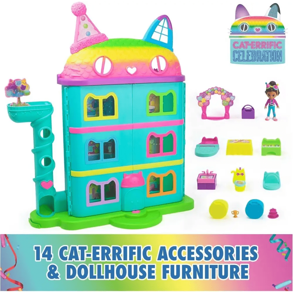 Include un personaggio giocattolo di Gabby (8,8 cm), 10 accessori tra cui un gabinetto a forma di gattino, un pianoforte e una console da DJ. La casa è dotata di un "Gat-ascensore" che permette di accedere a sei stanze e a un'area giochi sul tetto.