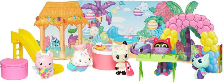 All'interno di questa scatola troverai tutto il necessario per organizzare una festa per il miglior amico di Gabby. I cinque personaggi da collezione sono pronti a fare festa, mentre con gli accessori colorati potrai creare una divertente atmosfera festosa