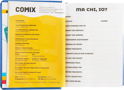AGENDA COMIX 16 MESI MINI: Questa agenda Comix 16 mesi, dal 1° settembre 2025 al 31 dicembre 2026, è ideale per la Scuola Media e Superiore TASCABILE: Grazie alle dimensioni ridotte (11x15.3h cm) è comoda da portare sempre con te, per prendere appunti e pianificare le tue giornate scolastiche MATERIALE DI QUALITÀ: Realizzato con materiali resistenti e durevoli, per durare tutto l'anno scolastico ACCESSORI COMIX: Scopri tutti gli accessori Comix per scuola, università e lavoro, dagli zaini e gli astucci in morbido poliestere, alle agende di diversi formati COMIX: Dall'omonimo giornale di umorismo e fumetti, nel 1994 in casa Franco Cosimo Panini Editore nasce la prima agenda Comix. Oggi Comix include un'ampia gamma di prodotti per la scuola, l'università, il lavoro e il tempo libero