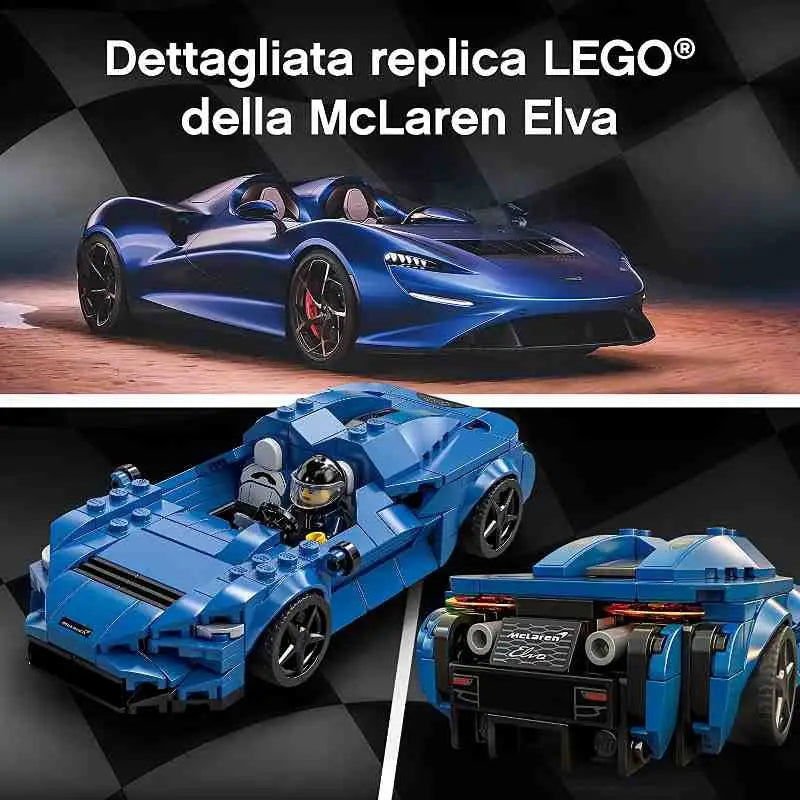 Colleziona le auto da corsa più iconiche con i set LEGO Speed Champions. La scatola 76902 contiene 263 pezzi per realizzare una fedele riproduzione della McLaren Elva.