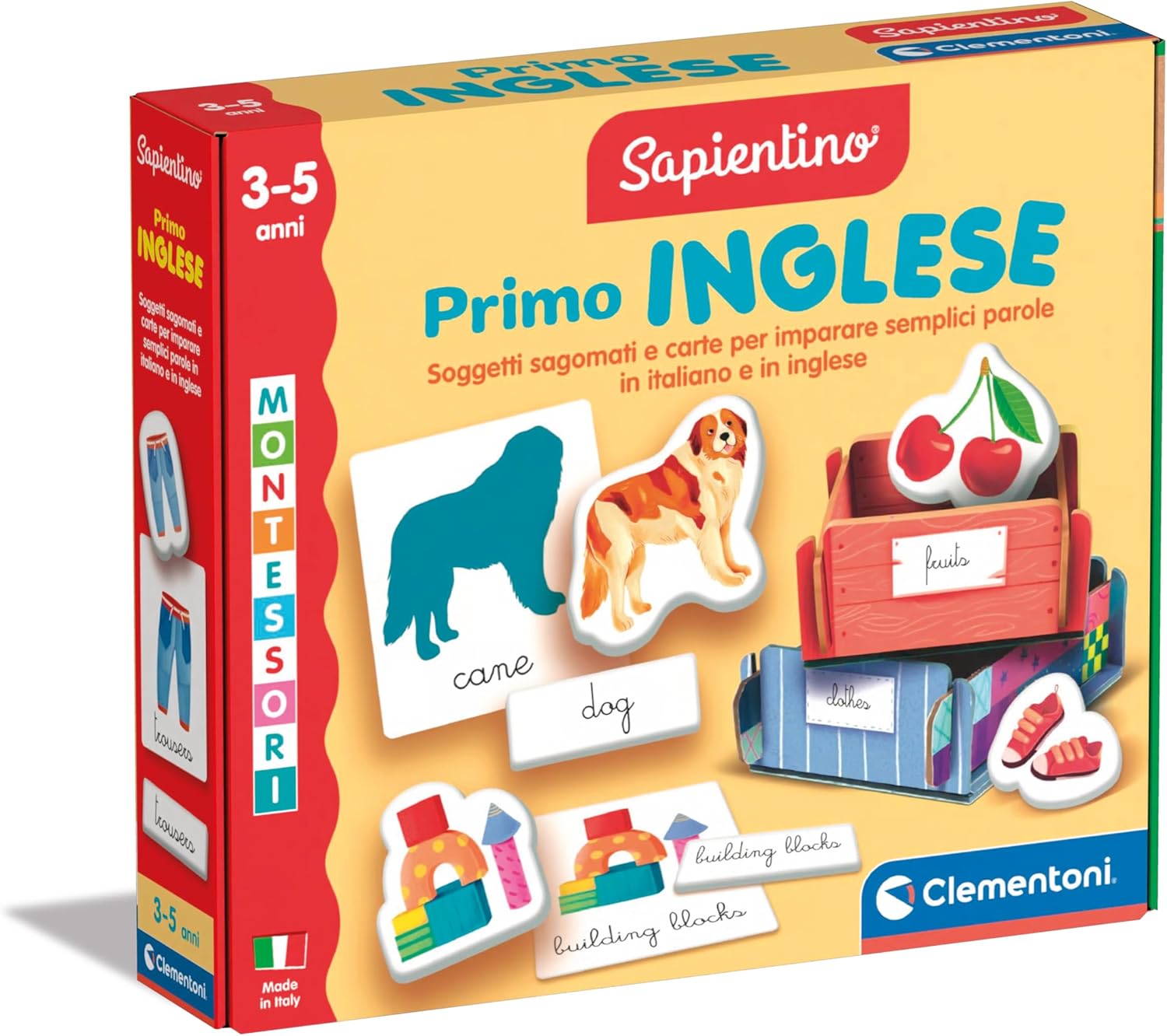 Impara divertendoti con Sapientino Montessori Primo Inglese di Clementoni, il gioco educativo ideale per bambini da 3 a 5 anni. Attraverso soggetti sagomati e carte illustrate, i più piccoli imparano le prime parole in italiano e in inglese, sviluppando linguaggio, memoria e capacità di associazione.