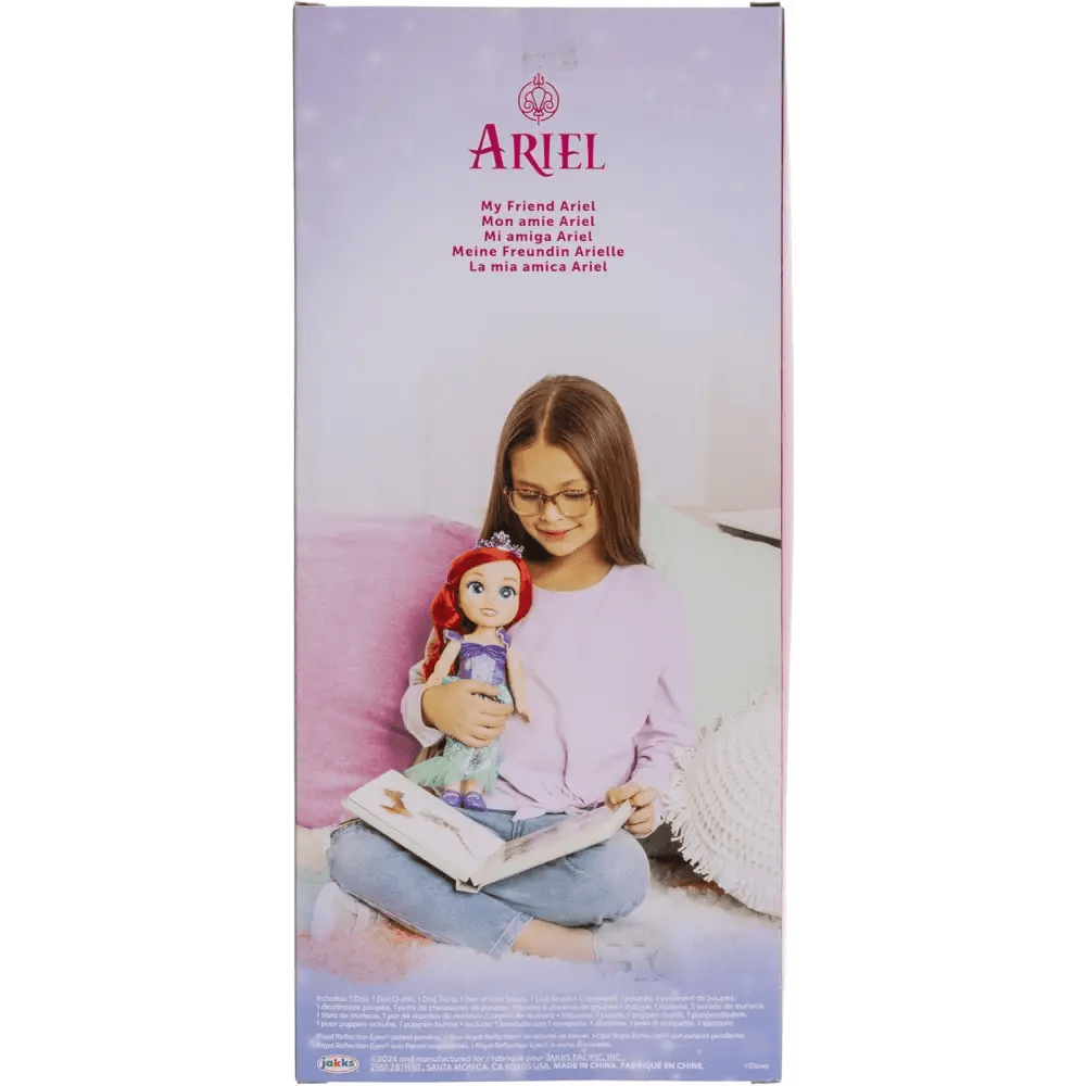 Con questa bambola di Ariel, alta 38 cm, potrai entrare nel magico universo delle Disney Princess! La bambola è arricchita dai Royal Reflection Eyes, che donano uno sguardo scintillante e luminoso. I suoi occhi brillano, rendendo il suo look ancora più magico!