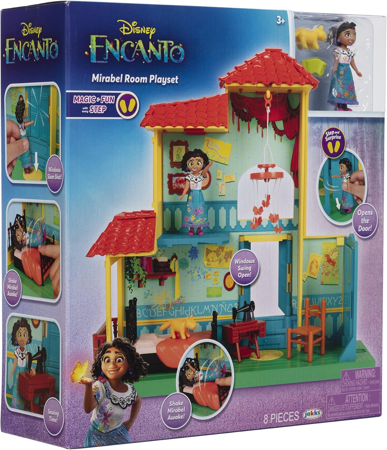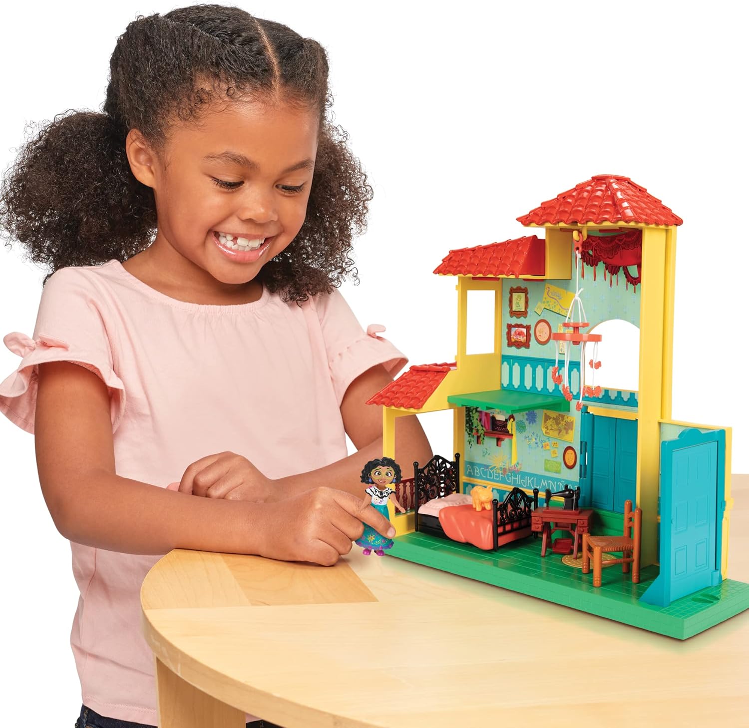 All'interno di questa abitazione su 2 livelli trovi tanti elementi accessori per creare infinite storie. Il letto di Mirabel è dotato di una speciale funzione che lo fa oscillare quando è il momento di svegliarsi, la porta e la finestra apribili aggiungono realismo al gioco.