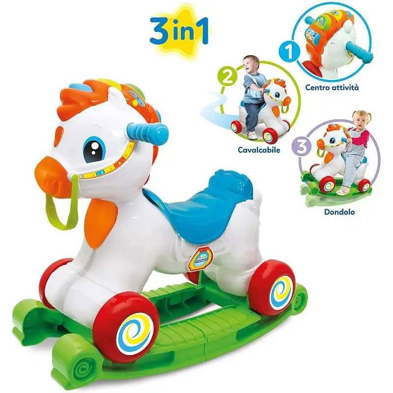 Il Cavallino Martino è il gioco interattivo che può essere utilizzato in 3 modalità diverse: come dondolo, come cavalcabile e come centro attività