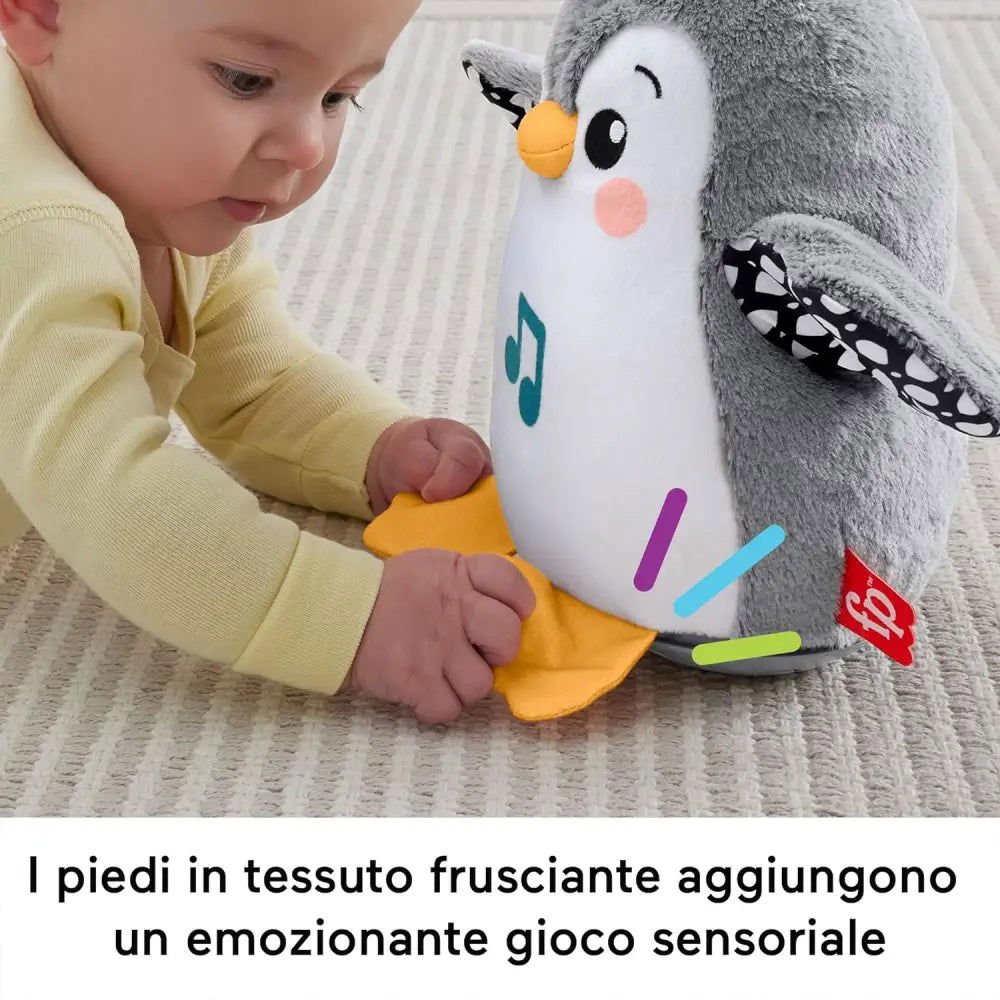 Il Pinguino Dolci Coccole è un morbido peluche stimolante e divertente per i bambini piccoli!