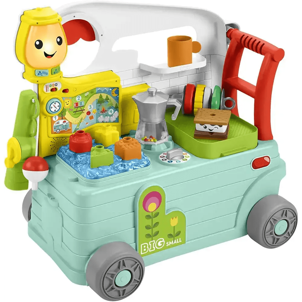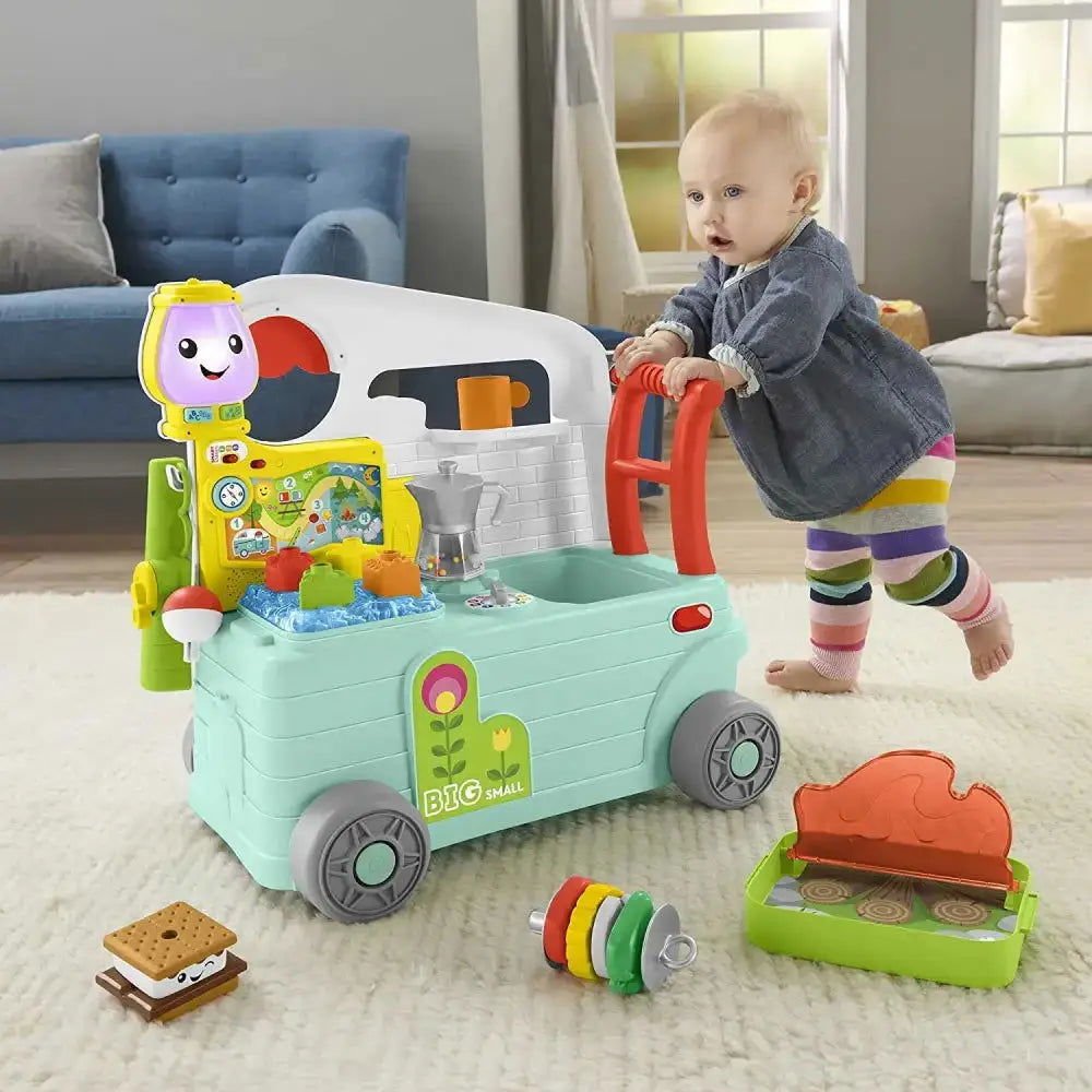 Ridi e Impara Camper 3-in-1 è il centro attività di Fisher Price che cresce insieme ai bambini e offre loro diverse attività per giocare da seduti o in piedi