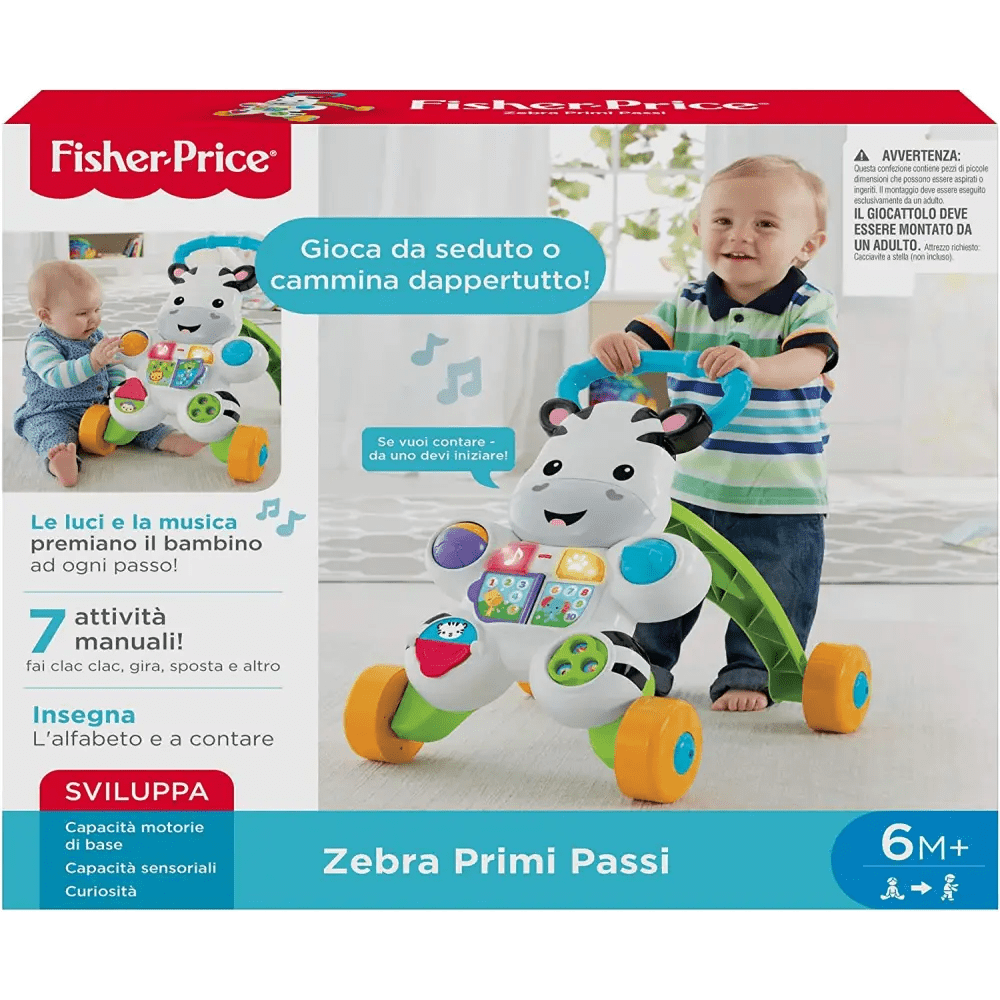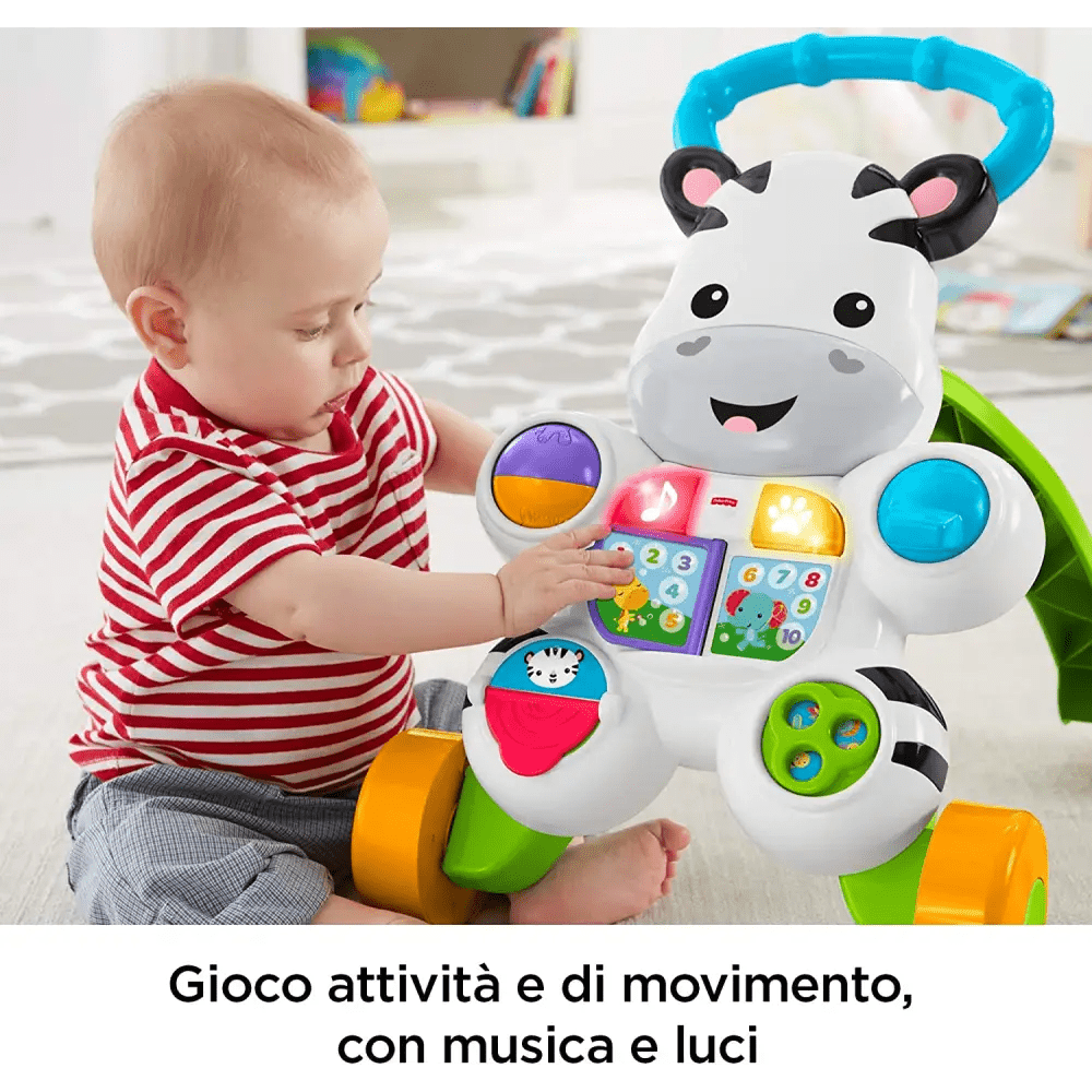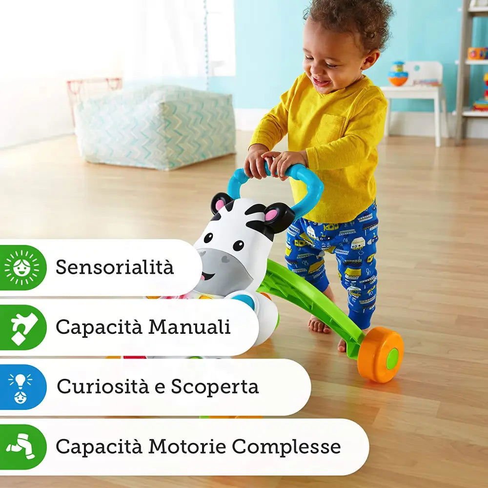 La Zebra Primi Passi di Fisher Price accompagna i bambini nelle diverse fasi della crescita grazie alla diverse attività da svolgere sia stando seduti che in piedi.