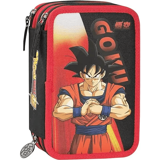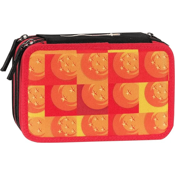Dragon Ball astuccio 3 scomparti chiusi da zip contenenti tutto il materiale di cancelleria necessario per la scuola