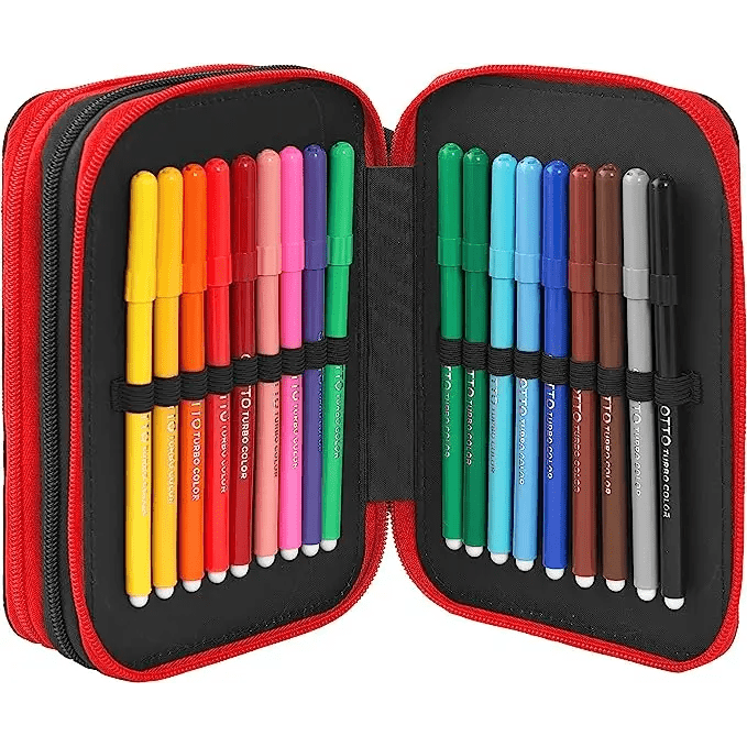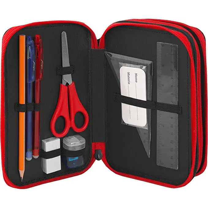 • Questo fantastico astuccio 3 scomparti contiene tutto il materiale di cancelleria indispensabile per la scuola.
