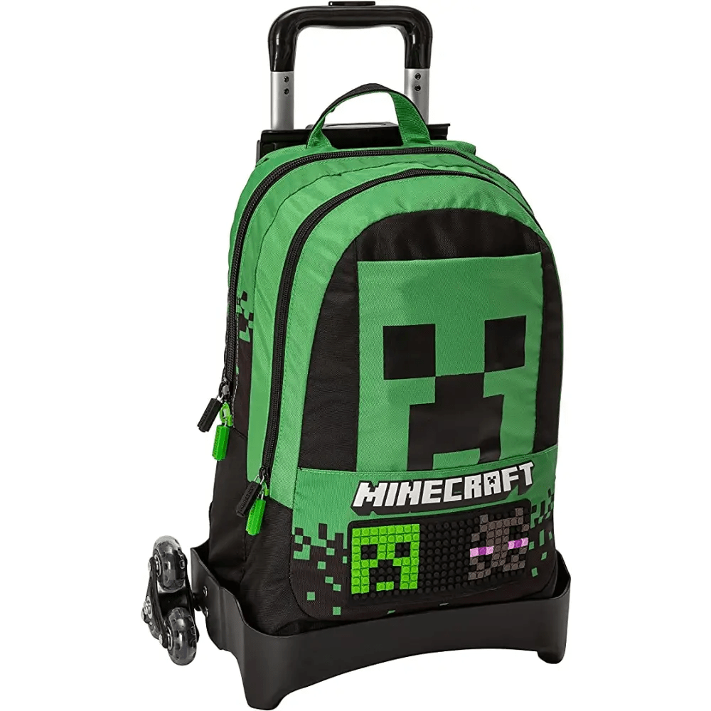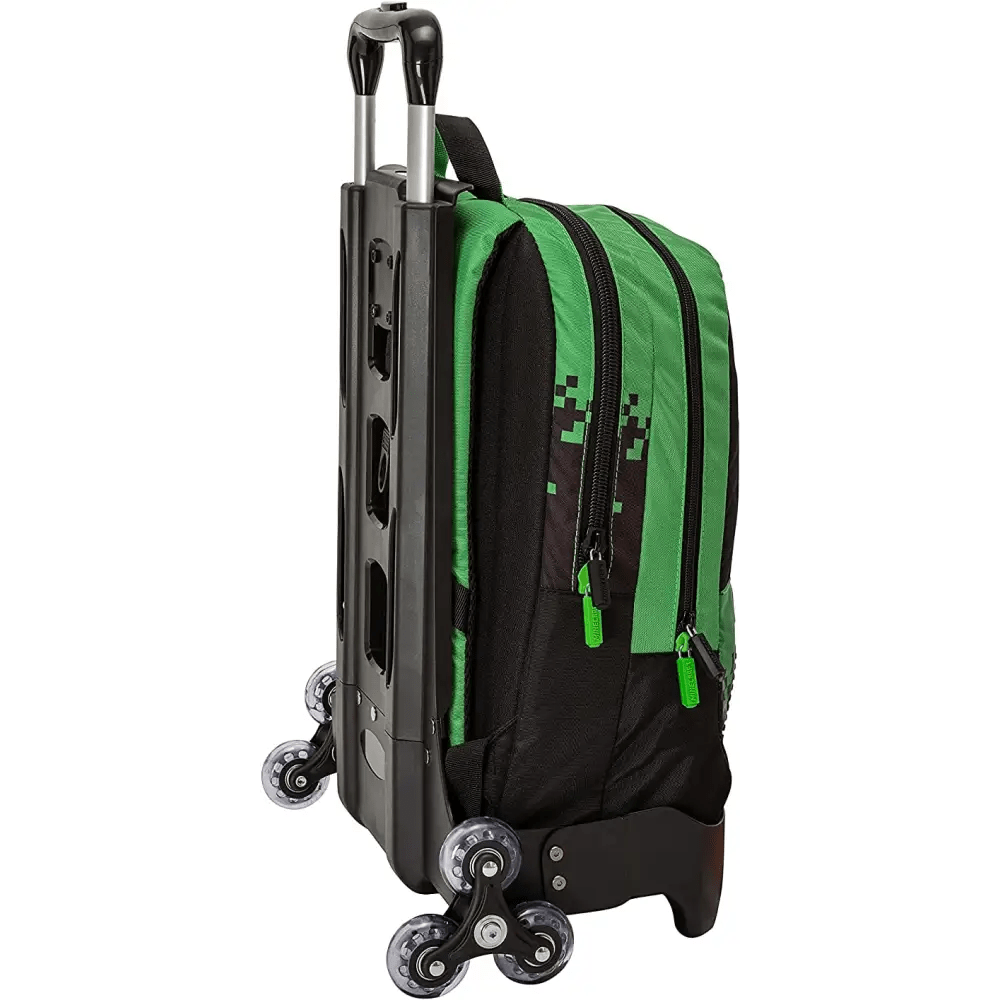 Collezione Scuola Minecraft per l'anno 2022/2023. Ecco il nuovo modello Trolley staccabile Pixel che può essere regolato in altezza grazie alla maniglia. Con un bottone magnetico è possibile agganciarlo o sganciarlo. Le chiusure sono con cerniere, lo schienale è termoformato e gli spallacci sono imbottiti e molto resistenti. La dimensione completa con all'interno inserito lo zaino è 33x52x22. Chiusura principale con doppia tasca frontale con zip. Le dimensioni dello zaino fuori dalla struttura Trolley sono 29,2 x 43h x 18 cm. Il prodotto è ufficiale e realizzato da Franco Panini.