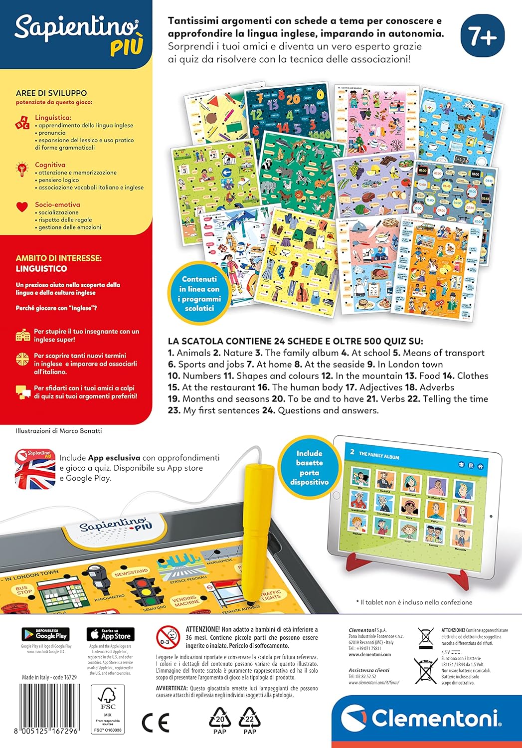 Progettato e realizzato Made in Italy, questo gioco unisce metodo didattico, tecnologia e divertimento. Grazie all’app dedicata, i bambini possono continuare l’esperienza di apprendimento anche in digitale, rafforzando pronuncia, vocabolario e comprensione in modo naturale.