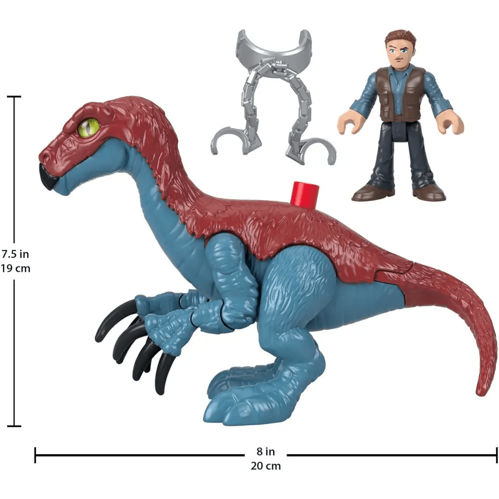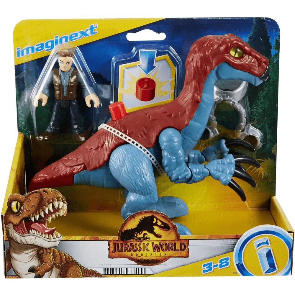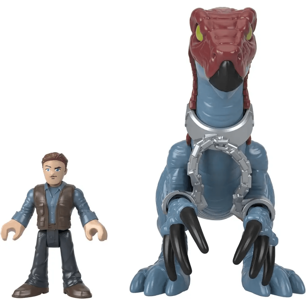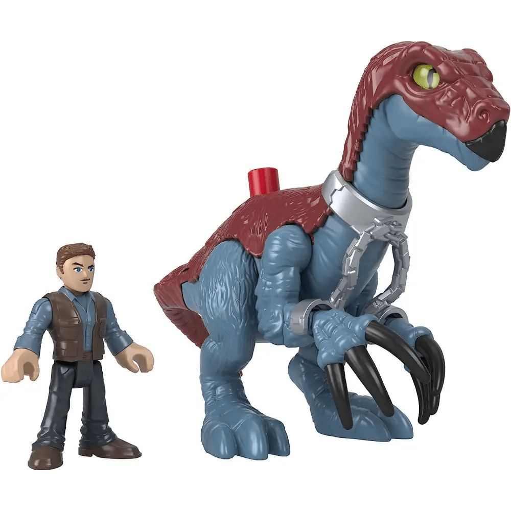 Il personaggio di Owen è dotato di gambe e braccia mobili mentre il dinosauro è dotato di una funzione che gli permette di liberarsi dalle catene premendo il pulsante rosso posto sul suo dorso