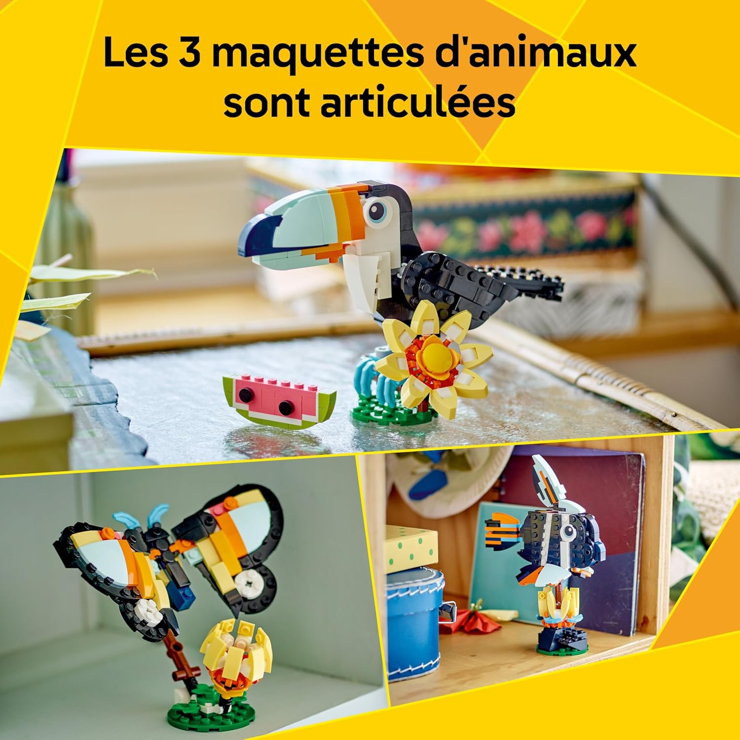 • 🐦 Design realistico: il LEGO 31173 include dettagli curati come il grande becco multicolore, le ali mobili e una base floreale tropicale.