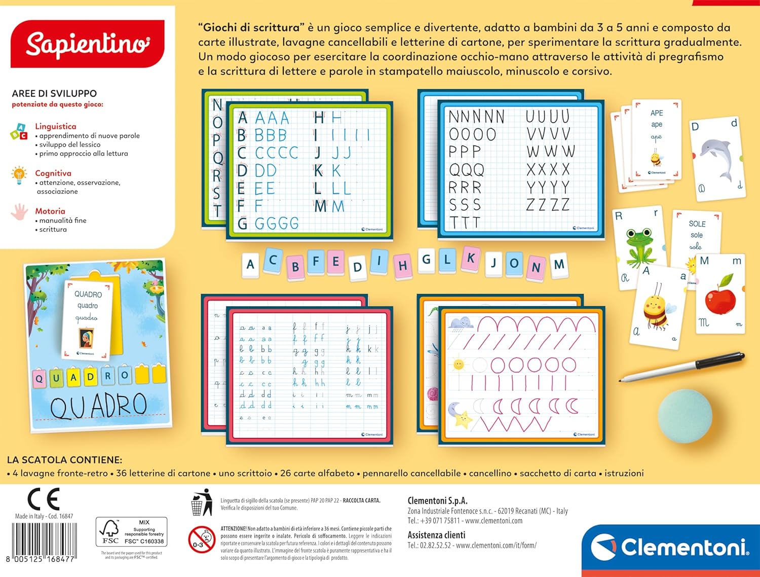 - Include carte alfabeto, lavagne, pennarello cancellabile e letterine